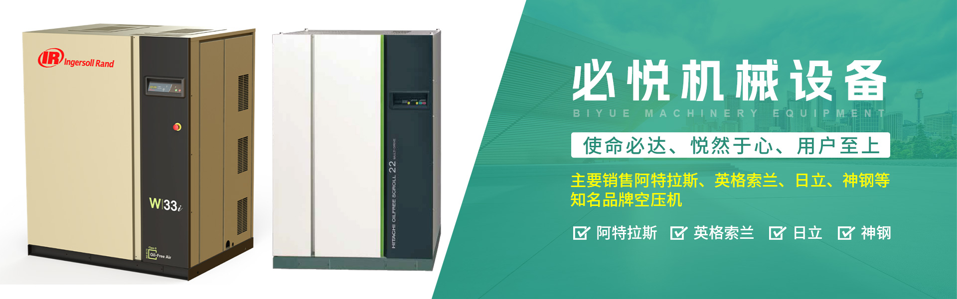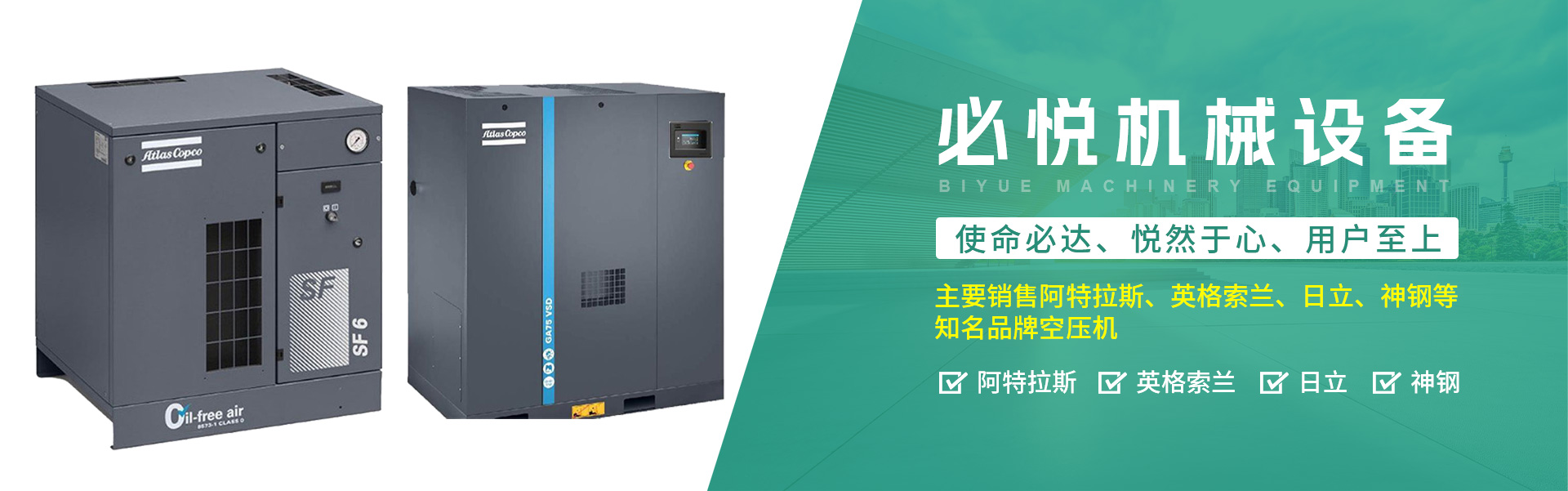 主要销售阿特拉斯、英格索兰、日立、神钢等知名品牌空压机